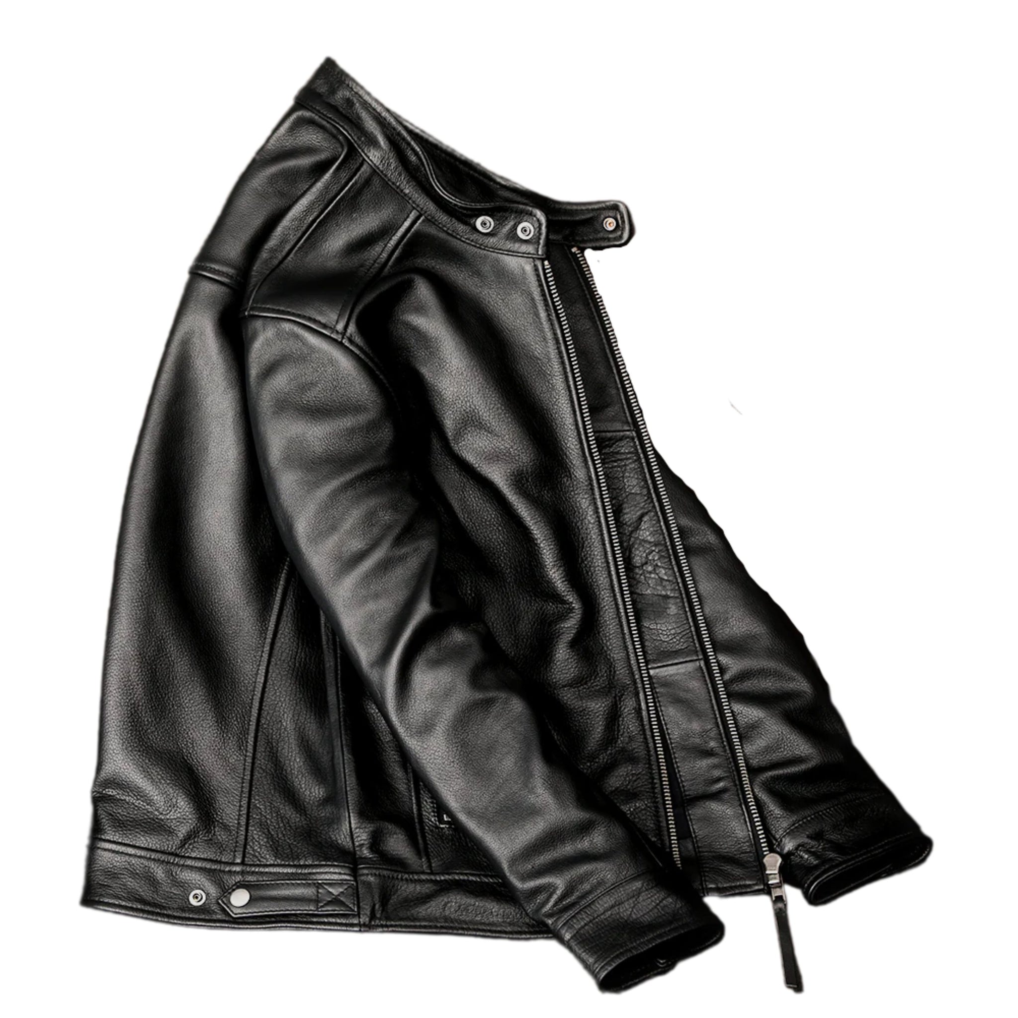 Men's Premium Black Cowhide Leather Cafe Racer Motorcycle Jacket